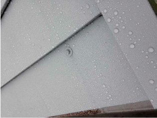 ▲ ラバーロックを施工した鉄板屋根に雨が降った直後の状況
